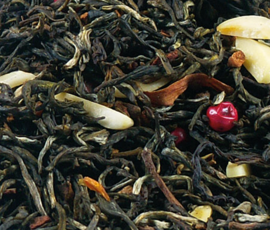 Thé vert, cannelle, amandes, arôme, poivre rose, clou de girofle, fleurs de muscade, arôme naturel.
